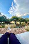 Throughout the resort, there were ample sitting areas for nature viewing—my favorite of which was right outside my door. On the other side of the window wall was a private patio area complete with an oversized beanbag chair (that fits two!) and a table to rest your drink on. This quickly became our go-to spot every night after dinner for stargazing. The heavy blankets stored in our closets made this nightly activity extra comfortable.