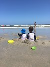 And, when I look back on what my 5 year old calls the best vacation ever, I don't think about the flight. I think about the "sand couch" we made on the beach (really just small hole on the beach), big enough for the whole family to sit in, and screaming in delight as the waves crashed up on us.