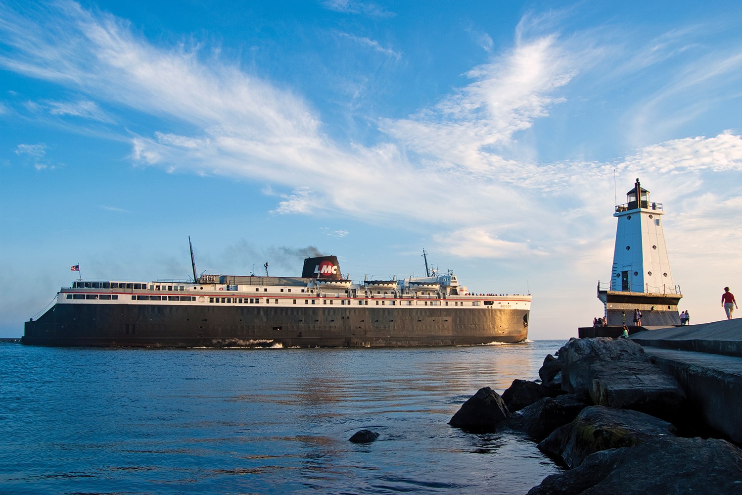 South of the beach near the marinas is Waterfront Sculpture Park. The park features nine bronze sculptures that relate to Ludington's history, a children's playground and a prime viewing spot to watch the S.S. Badger sail away in the morning and dock at night. The passenger ferry has been in service for over 70 years, and today the four-hour cruise includes family-friendly amenities like free movies, board games, a museum and "Badger Bingo."