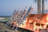 Don’t miss the espetos. Well, you won’t be able to miss them — these sardine skewers grilled over a wood fire are as tasty as they are fragrant.