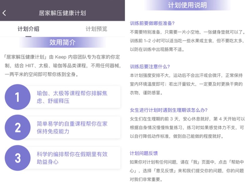 - 抗“疫”锻炼专题,宅家不无聊:响应抗“疫”行“动”,Keep 还推出了丰富的居家训练计划,比如 7 天瑜伽打卡计划、激活能量开工主题、居家减压健康计划等,让宅家运动成为乐趣和好习惯~