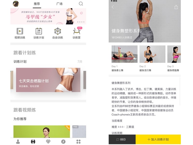 - 局部塑造课程,适合高要求的你:海量的专题课程,适合想要修炼马甲线、蜜桃臀、天鹅臂的运动爱好者。还有产后恢复课程,新手宝妈们也可以动起来!