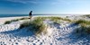 Der Sand des Dueodde-Strandes in Dänemark ist weiß und weich wie Puder, schreibt „Lonely Planet“. So feinkörnig, dass er früher für Sanduhren verwendet wurde. Hier kann man vor dem Hintergrund ausgedehnter Dünen und Kiefern kilometerweit am Meer entlang wandern oder sich sogar weit hinaus ins kühle Nass selbst trauen, denn der Meeresboden flacht nur langsam ab. Wo liegt er genau? An der südlichsten Spitze der Insel Bornholm in der Ostsee.