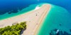 Zlatni Rat, auf Deutsch Goldenes Horn, ist einer der beliebtesten Strände Kroatiens. Er befindet sich auf der Insel Brač unweit vom beliebten Touristenziel Split an der dalmatischen Küste, seinen Namen verdankt er der hornartigen Form. Früher landeten hier Wasserflugzeuge auf der Strecke Prag-Split-Bol, heute kommen besonders Surf- und Kitesurf-Fans hier auf ihre Kosten. Fun Fact: Zlatni Rat ist einer der wenigen Strände in Kroatien, der manchmal mit Schnee bedeckt ist.
