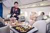 Auch kulinarisch müssen Sie über den Wolken nicht auf Luxus verzichten. In der Business Class werden Drei-Gang-Menüs auf edlem Porzellan serviert, dazu gibt es eine Auswahl an Rot-, Weiß- und Roséwein. Auf der Langstrecke freuen Sie sich sogar zweimal über diesen Service. In der Premium Economy gibt es ebenfalls drei Gänge und zusätzlich noch Snacks.