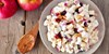 Zutaten für 4 Portionen: Zitronensaft // 4 rote Äpfel // 70 g Rosinen oder Cranberrys // 250 g Sahne // 1-2 Stangen Staudensellerie // 80 g Nüsse (Walnüsse oder Cashews) // ½ Dose Ananas // 100 ml Kondensmilch // wenn gewünscht: Kokosflocken // Salz