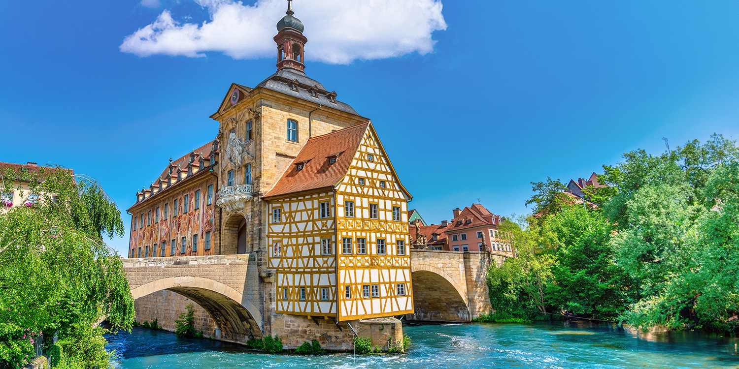 Fachwerkhäuser, historische Bauten und Unesco-Welterbe: Im Welcome Kongresshotel Bamberg können Sie „an der Regnitz entlang bis in die Altstadt laufen