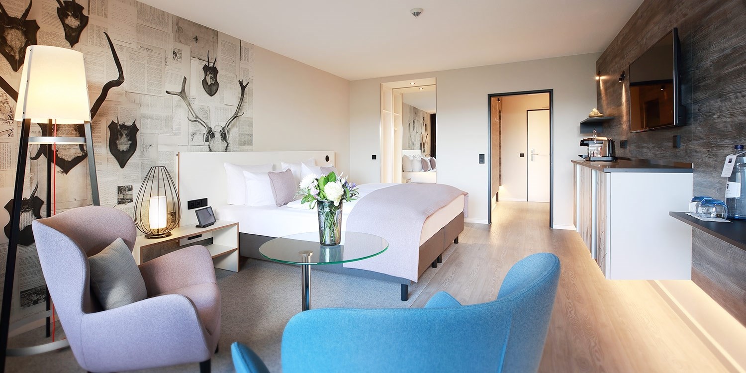 - Sie schlafen im 32 m² großen Doppelzimmer mit Balkon oder Terrasse