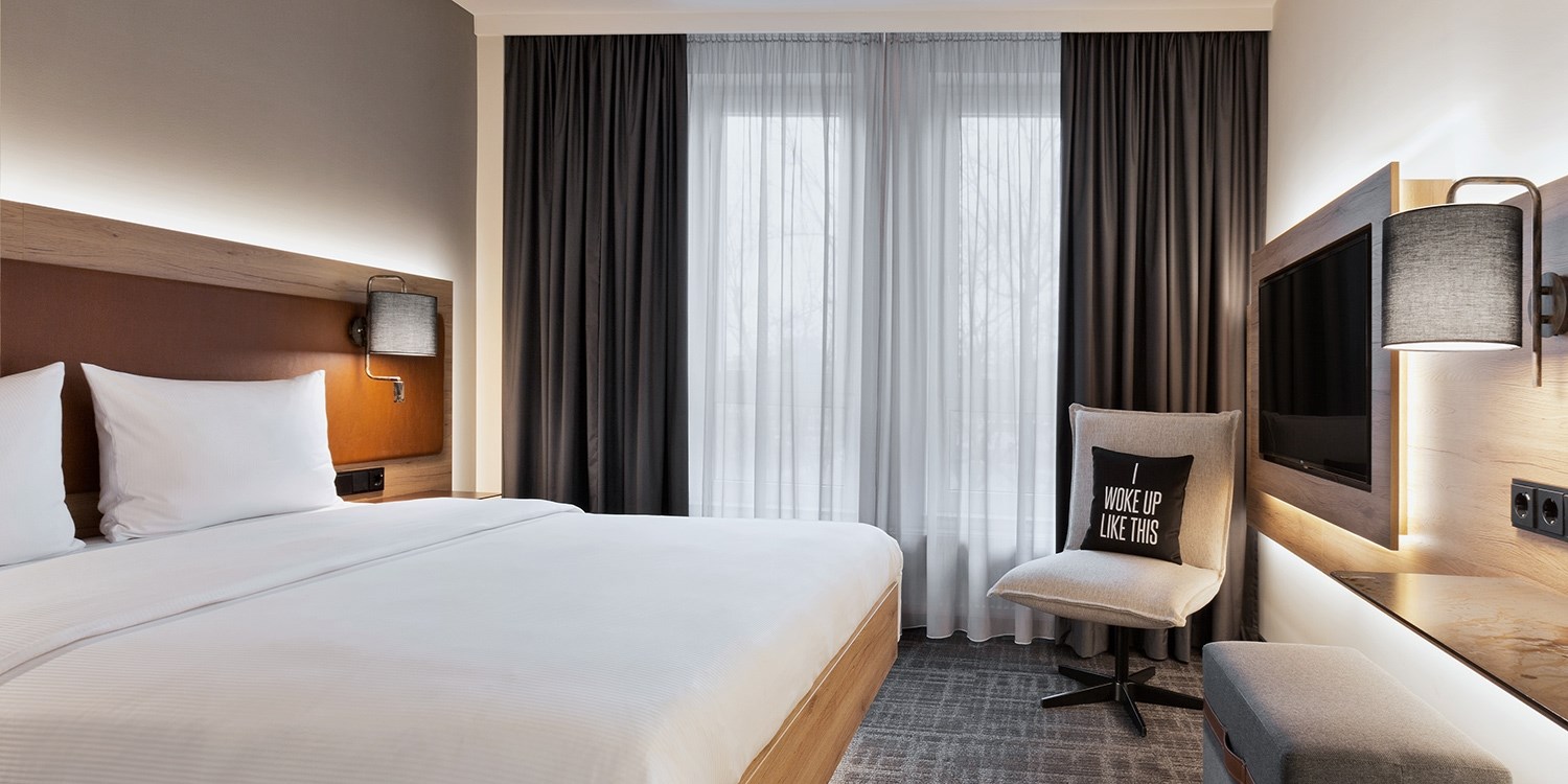 So bunt wie Berlin: Die Deko im Moxy Humboldthain ist knallig und heimelig zugleich. Mit dem zur Marriott-Gruppe gehörenden Hotel haben wir folgenden Deal verhandelt: