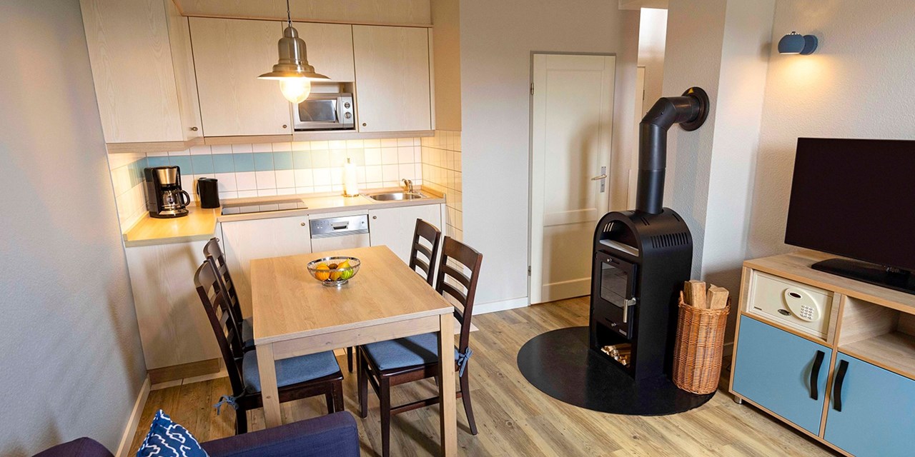 Ihr Apartment liegt im Obergeschoss, ist circa 48 m² groß und mit Küche und Sofa ausgestattet.