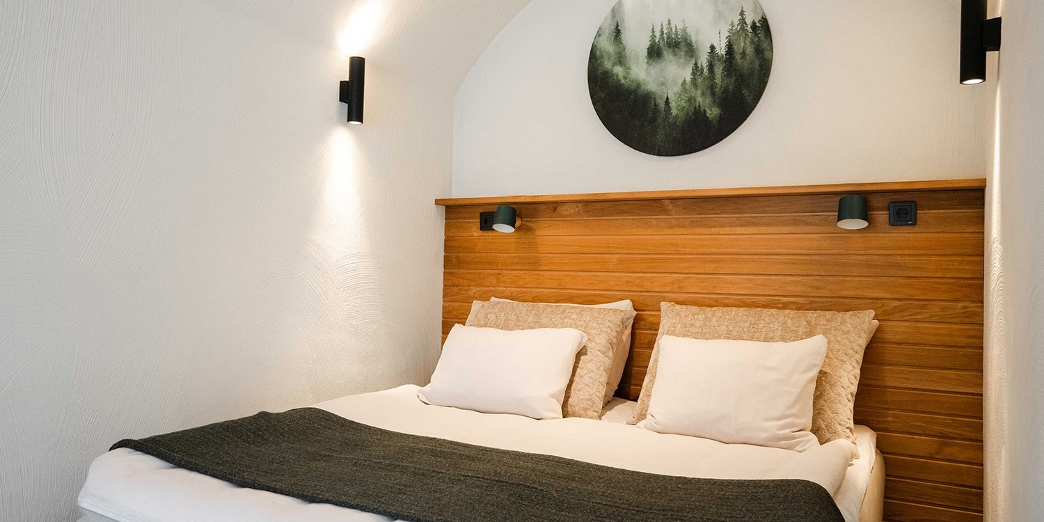 Ihre Junior-Suite mit Kochnische und eigener Sauna ist eine gemütliche Hütte im Hobbit-Stil.