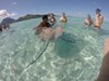 De hecho, podemos confirmar que cumplieron con todo lo prometido y no te sientes engañado. Vimos un montón de rayas, de atunes rojos y de tiburones. Además alimentamos a otros peces, y pudimos tocar y jugar con las rayas. Fuimos a comer a un motu o islote privado (no había nadie, solamente los que habíamos hecho la excursión) y la comida estaba deliciosa. Nos explicaron como abrir un coco, nos dieron un concierto de ukelele y nos tumbamos al solecito un rato. Indescriptible.