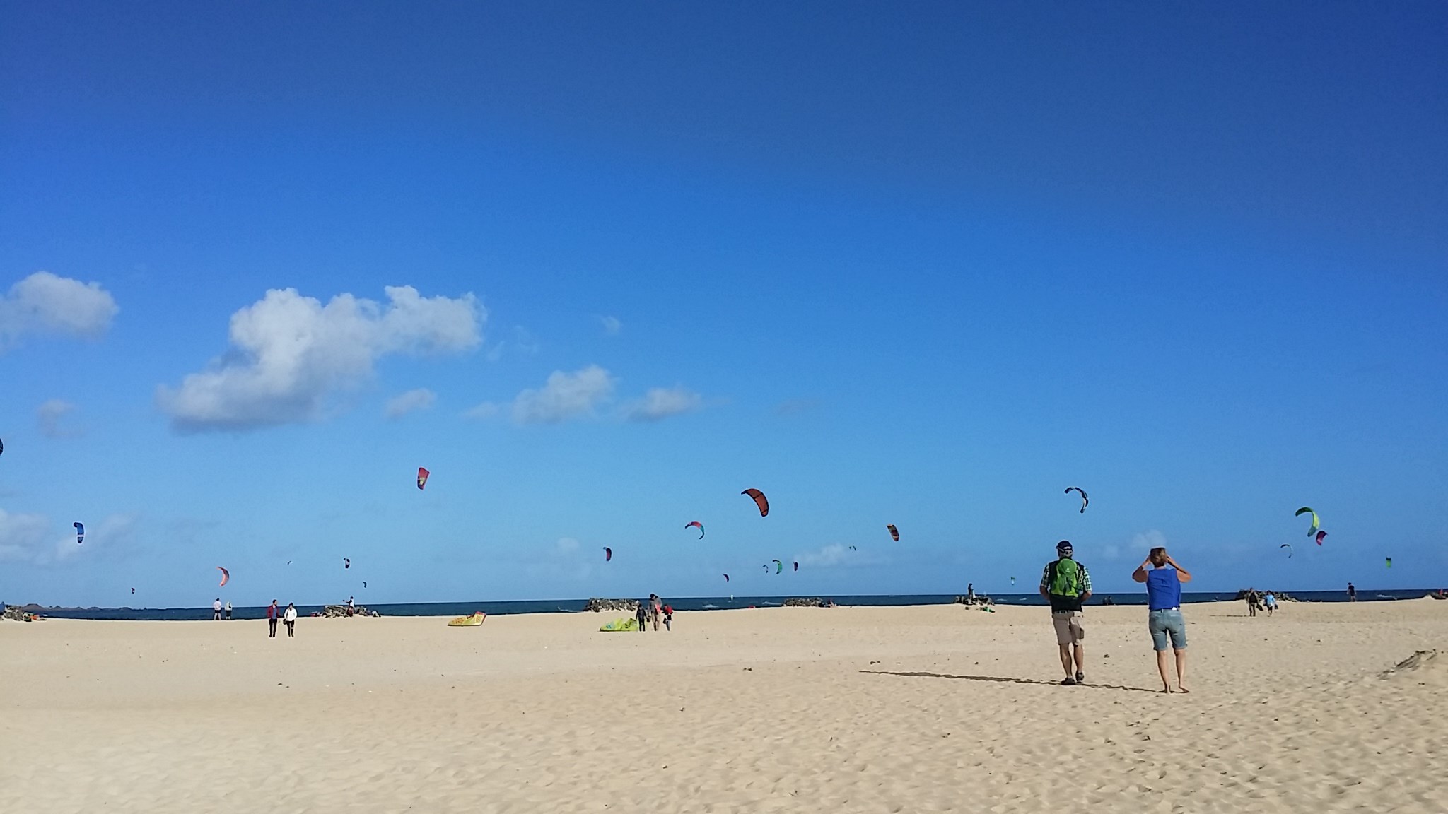 Fuerteventura es una isla eminentemente plana. No hay formaciones montañosas importantes, lo que no impide que los vientos alisios soplen a sus anchas. El viento sopla fuerte desde mayo a octubre, sobre todo en la zona norte. De todos modos, una de las grandes ventajas de esta isla es la posibilidad de cambiar de norte a sur y viceversa cuando el viento esté actuando en un lado u otro de la isla. Pero no es el caso de los amantes del surf / kite-surf. Ellos buscan el viento desesperadamente. Y Fuerteventura es un spot ideal para eso. En el norte tienen Corralejo, Majanicho y la isla de Lobos para los más avanzados con las olas. Los principiantes pueden elegir entre una variada oferta de escuelas y El Cotillo sería una buena playa por sus largas olas, fáciles de maniobrar.