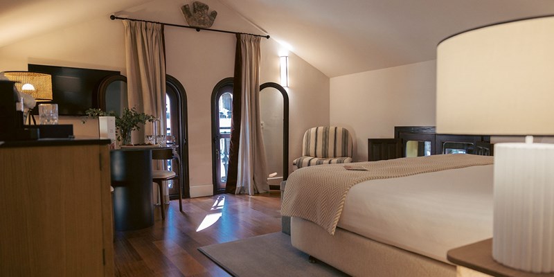 - Les chambres Deluxe, situées dans le palais du XIXe siècle, offrent une décoration chaleureuse qui allie mobilier design et touches contemporaines. Certaines conservent les mosaïques et plafonds d’origine, et ont vue sur le jardin ou la ville. Elles mesurent 35 m² et disposent d’un lit king ou de lits jumeaux, avec des draps en coton égyptien.