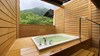 チェックインの15時から利用できる「天空貸切風呂」。名前が異なる4つの湯殿があり、全てのバスタブが2名で入浴してもゆったりできる大型サイズでした。
