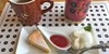 雄大な景色を楽しみながらのおいしい食事の始まりです。テーブルには『ろくもん』専用、真田家の家紋が描かれているかわいいランチョンマットが敷かれていて、テンションUP。メニューは軽井沢の人気店「アトリエ・ド・フロマージュ」の前菜、メイン料理。さらに、アルコールを含む1人1杯のドリンクも付いていて、私はもちろんビールをチョイス。おしゃべりと景色を楽しみながらおいしい料理に舌鼓。