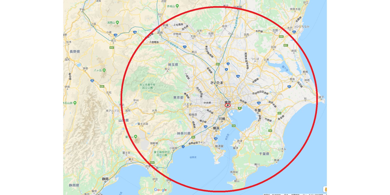 都心から2時間圏内って、このくらいの範囲です