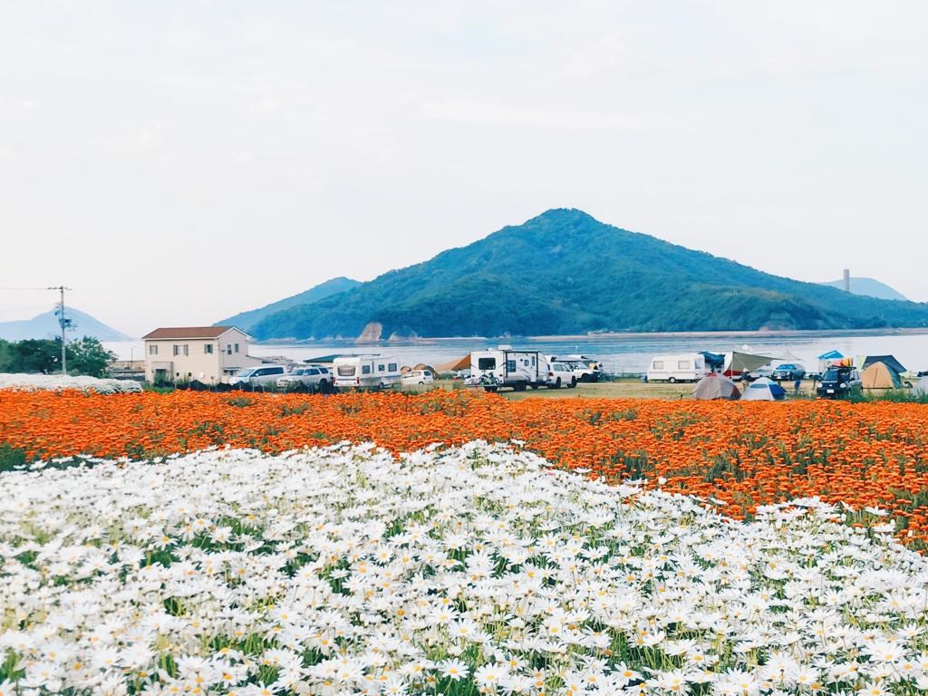 浦島花公園位於四國香川縣的三豐市的莊內半島上。每年 5 月,這裏放眼都是瑪格麗特花,美不勝收,而且遠處與高山大海相伴,非常漂亮!公園附近還可以露營,不少日本人帶同一家來住宿一宵呢!