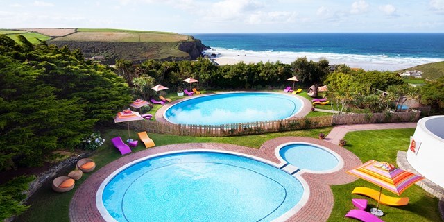 As well as award-winning restaurants and a spa with ocean views, it has an Ofsted-registered kids' club, table football, a jungle tumble ball pool, assault courses and a Wii games room. Guests can book surf lessons with The Surf Club Cornwall, based at the hotel. Lessons are on Mawgan Porth beach in front of the hotel. Minimum age is six and lessons are available all year round.
