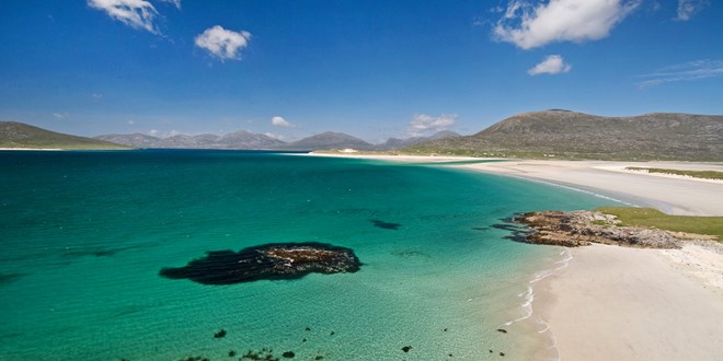 As you can see, Luskentyre Beach, with its green-blue waters lapping at fine white sands, clearly has no place hanging around within UK boundaries. Yet somehow, however improbably, that's exactly what it does. Pop a wetsuit on, slather on the fake tan, and you could almost be in the Bahamas.