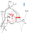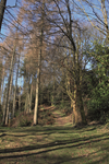 1. From the car park, don’t go through the gate into the castle park, but pick out an enclosed path between the football field and the castle park boundary. Shortly, on the left, you’ll find a set of benches with leaf motifs, the BMX track and the cricket ground. Keeping to the foot of the castle mound, continue on a gravel path. You’ll soon come to the cemetery on your left. Swing right with the wall on your left and walk down the hill. The track descends more steeply through an opening and down a slope by the allotments. Join a concrete path into the woods and then on the level beside the allotments. When you come to a junction of tracks, go straight ahead towards some steps and a crossing path.